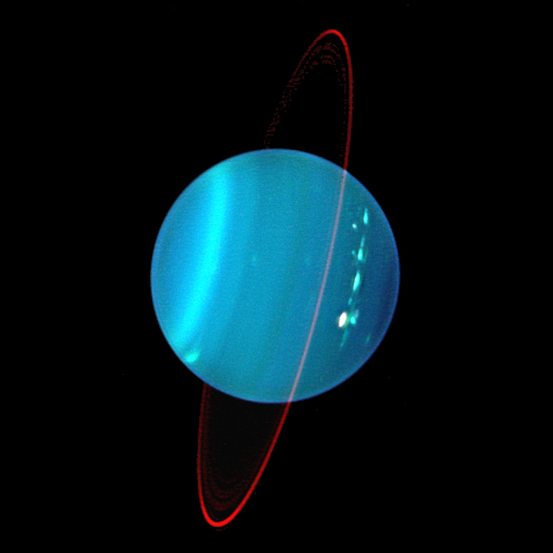 Uranus - located in Pisces. Uranus can best be seen around 5:00 am EDT at mid-month, when it will be 25 degrees up in the east. Uranus will be magnitude 5.9 and have a tiny 3.5 arc-second pale green disc.